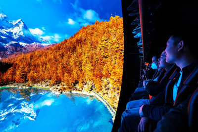 For sci-fi enthusiasts, the Stellar Odyssey zone offers a futuristic escape. Its crown jewel is the “Flight Theater,” a suspended dome-screen flying cinema that takes guests on a cinematic voyage over Sichuan’s landscapes and into the mysteries of Sanxingdui—an ancient Bronze Age civilization. With wind, mist, and dynamic motion seats, the experience feels astonishingly real. Nearby, “Soaring Skies” simulates astronaut training with a soaring flight simulator, while the “Stellar Club” uses real-time motion capture to let visitors interact with cosmic projections in a high-tech indoor playground.