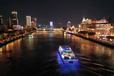 Boarding a modern, well-appointed riverboat from Dashatou Wharf offers travelers an unforgettable journey through Guangzhou’s luminous urban landscape after dark. The standard cruise lasts approximately 70 to 90 minutes and glides past some of the city’s most celebrated landmarks. As the boat departs eastward, passengers are treated to panoramic views of the Canton Tower (Guangzhou TV & Sightseeing Tower), the futuristic skyline of Zhujiang New Town, the cultural landmark of Haixinsha Island—site of the 2010 Asian Games—and the illuminated bridges that span the Pearl River, including the Haizhu Bridge and Guangzhou Bridge. Many vessels feature open-air upper decks, climate-controlled cabins, live commentary (often available in English), and optional dining packages featuring Cantonese delicacies.