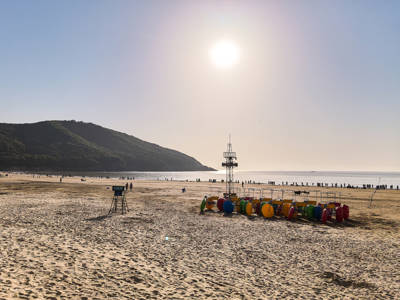 Nestled on the southeastern coast of Zhujiajian Island in Zhoushan, Zhejiang Province, Dongsha Beach (East Sand Beach) is widely celebrated as the longest and most picturesque stretch within the famed “Ten-Mile Golden Sands” (Shili Jinsha). Spanning approximately 1,300 meters in length and 250 meters in width, this north-south oriented beach curves gracefully like a crescent moon, offering visitors a harmonious blend of natural beauty, recreational opportunities, and serene coastal ambiance. With its fine, powdery sand that feels soft yet firm underfoot—so much so that your feet barely sink—and gentle, rhythmic waves that roll in with soothing consistency, Dongsha has earned a stellar reputation among both domestic and international travelers seeking an authentic seaside escape.