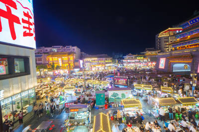Nestled in the heart of Kaifeng—a city once the imperial capital during the Northern Song Dynasty (960–1127)—the Drum Tower Night Market traces its roots back over a thousand years. Historically, Kaifeng was one of China’s most prosperous urban centers, famed for its bustling commerce, refined culture, and sophisticated urban planning. The original Drum Tower, built during the Ming Dynasty (1368–1644), served as a timekeeping and ceremonial structure, marking the rhythm of daily life with drumbeats at dawn and dusk. Though the original tower was destroyed in the early 20th century, it was meticulously reconstructed in 2013 based on historical records and archaeological findings. Today, the surrounding plaza has evolved into one of Henan Province’s most iconic night markets, blending ancient ambiance with modern gastronomic energy.