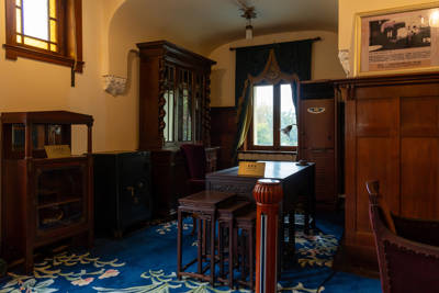 The third floor reveals the private quarters: the governor’s bedroom with its ornate crystal mirrors, a bridge room for card games, and a thoughtfully designed nursery where every furnishing lacks sharp edges and lighting is diffused to protect children’s eyes. One particularly ingenious feature is a hidden gun cabinet that requires simultaneous pressure on two wooden levers to unlock—ensuring curious children couldn’t access it even with the key. These subtle yet practical design choices reflect a blend of luxury and foresight rarely seen in historic residences.