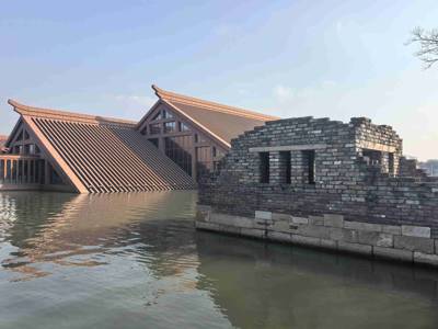 One of the park’s most iconic features is the Guangfulin Cultural Exhibition Hall, ingeniously built beneath the surface of Fulin Lake. Only the pyramid-shaped rooftops are visible above water, creating a surreal and photogenic landscape that blends seamlessly with the surrounding natural scenery. This architectural design symbolizes the “submerged memory” of Shanghai’s origins, inviting visitors on a metaphorical dive into the city’s deep past. Inside, the exhibition unfolds as a “journey through time,” using immersive audiovisual technology to narrate key chapters of regional history—from the geological formation of Shanghai’s landmass to the rise of Songjiang as an administrative center and ultimately to Shanghai’s transformation into a global metropolis.