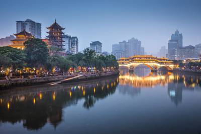Jiuyan Bridge, or "Nine-Eyed Bridge," is one of Chengdu’s most iconic landmarks with roots stretching back to the late Ming Dynasty (around the 16th century). Originally constructed as a stone arch bridge over the Jinjiang River—a tributary of the Min River—it was named for its distinctive nine arches, which facilitated both river traffic and pedestrian movement. While the exact construction date has been lost to time, historical records indicate it served as a vital transportation link between eastern Chengdu and the city center. The current structure is a reconstructed version that preserves the classical Chinese architectural style, featuring elegant curved arches, carved balustrades, and traditional pavilion-style elements. Though no longer used for primary transit, Jiuyan Bridge stands today as a cultural symbol blending Chengdu’s ancient heritage with its modern urban energy.