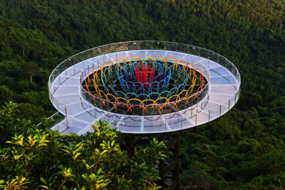 Perched at the summit of Yalong Bay Tropical Paradise Forest Park in Sanya, Hainan, the Panoramic Ocean-View Glass Skywalk is one of China’s most thrilling and visually stunning elevated walkways. Sitting at an elevation of 450 meters (1,476 feet) above sea level, this engineering marvel stretches 400 meters (1,312 feet) in length and reaches up to 10 meters (33 feet) in width at its broadest point. Constructed with 130 metric tons of ultra-clear, imported laminated safety glass—each panel measuring an impressive 3 by 3 meters—the skywalk offers unobstructed, floor-to-sky vistas that blend adrenaline with natural beauty. Visitors can peer directly down over 100 meters into the lush tropical rainforest valley below while simultaneously gazing out toward the legendary “World’s Finest Seaview”: the crescent-shaped turquoise waters of Yalong Bay.