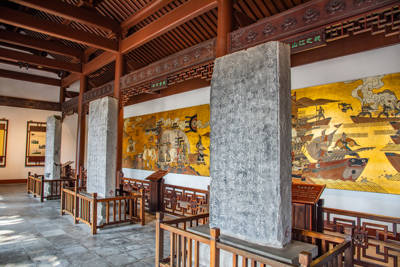 Perhaps the most historically significant feature is the replica of Su Shi’s (Su Dongpo) famed “Biao Zhong Guan Bei Ji” (Stele Inscription of the Temple of Loyalty). Although the original 11th-century stele—celebrated in Chinese calligraphy history—was lost centuries ago, the current version, meticulously recarved during the Ming Dynasty’s Jiajing era (1522–1566), remains a prized cultural relic. Its elegant script and literary depth offer insight into how later generations revered the Qian kings’ legacy.