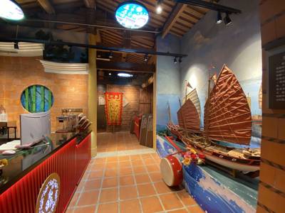 The interior blends tradition with modern storytelling. Suspended from the ceiling are 22 circular lanterns, each artistically representing one of Quanzhou’s World Heritage sites—from Kaiyuan Temple’s twin pagodas to the ancient Luoyang Bridge—arranged to narrate the epic voyage of Minnan ancestors across the South China Sea. Complementing these are eight square lanterns spotlighting Quanzhou’s top非遗 items, including Nanyin music, Liyuan opera, and Hui’an stone carving.
