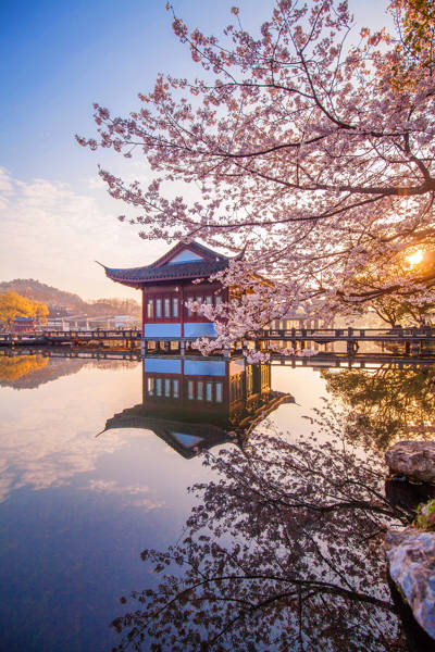 Quyuan Fenghe, one of the Ten Scenic Spots of West Lake, traces its origins to the Southern Song Dynasty (1127–1279). Legend has it that near Hongchun Bridge, a government-run brewery operated alongside serene ponds filled with blooming lotuses. In summer, gentle breezes carried the mingled fragrance of wine and lotus blossoms—a sensory delight so enchanting that it inspired the name “Quyuan Fenghe” (“Lotus in the Breeze at Quyuan”). The term “Qu” refers to fermented grain used in brewing, while “Yuan” denotes the courtyard or garden setting. Though the original brewery vanished centuries ago, the poetic imagery endured, immortalized in classical Chinese literature and later revived as a formal landscape garden during the Qing Dynasty.