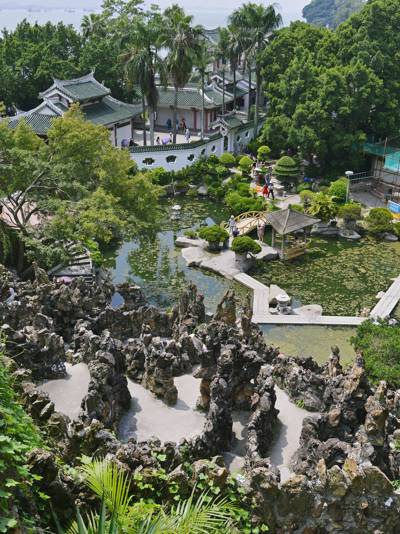 In Bu Shan Yuan, the highlight is the Twelve Caverns Heaven (Shi Er Dong Tian)—a labyrinthine artificial hill made of granite, featuring twelve interconnected grottoes. Each cavern corresponds to one of the Chinese zodiac animals, with subtle stone carvings marking their entrances. Visitors often enjoy a playful scavenger hunt to locate all twelve animal symbols, making this area especially popular with families and children.