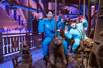 Adjacent to the ski area, the **Snow Park** transforms winter fantasy into interactive reality with more than 20 attractions: tube down the 6-meter-high Aurora Slide, navigate the whimsical “Snow Demon’s Labyrinth,” ride an ATV across snowy trails, or glide across the 1,000-square-meter Ice Mirror Lake on skates. Families can meet real Humboldt penguins at “Lolo Penguin Camp,” explore ice-carved castles in the “Ice Palace Adventure,” or join lively character-led parades and stage shows like “Aurora’s Dream” and “Alps Splash Party.”