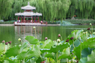 Spanning roughly one square kilometer, Taoranting Park is compact yet richly layered. At its heart lies a picturesque circular lake divided into three sections—East Lake, West Lake, and South Lake—by three elegant stone bridges. The lake encircles a tranquil island where the iconic Taoran Pavilion and the historic Cibei Temple stand. Surrounded by weeping willows, lotus ponds, and winding pathways, the park offers a peaceful retreat from Beijing’s urban bustle. Visitors typically explore the park on foot, with multiple entrances on all four sides making access convenient from any direction.