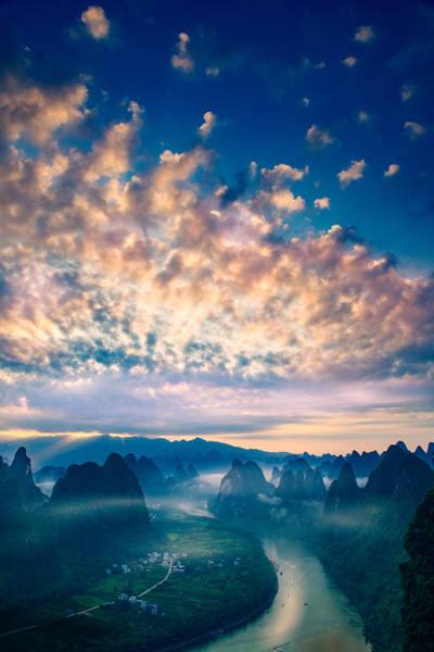Perched on the western bank of the Li River in Yangshuo County, Guilin, Xianggong Mountain Scenic Area (Xianggong Shan) is one of southern China’s most celebrated natural vantage points. Though modest in elevation—requiring only about 20 minutes to ascend—the summit rewards visitors with a panoramic vista that has become legendary among photographers and landscape enthusiasts. From this elevated perch, the Li River carves a dramatic meander through a sea of emerald-green karst peaks, creating what many describe as a living Chinese ink painting. The scene is especially magical at dawn, when mist curls around limestone spires and golden light bathes the river in ethereal glow.