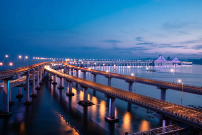 The bridge symbolizes Dalian’s transformation from a historic port city into a forward-looking metropolis. Located just south of Xinghai Square—a landmark built to commemorate Dalian’s centennial—the structure anchors a corridor of modern development that includes luxury hotels, convention centers, and seaside parks. Its perpendicular alignment to Xinghai Square’s central axis creates a powerful visual symmetry, reinforcing the city’s emphasis on harmonious urban planning. Locals often refer to the bridge as “Dalian’s Gate to the Sea,” reflecting its role as both a physical and symbolic threshold between the city and the ocean.