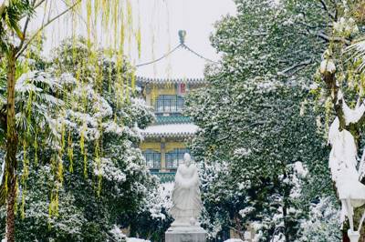 Perched on a small island entirely surrounded by East Lake’s tranquil waters, Xingyin Pavilion is accessible via two elegant bridges: He Feng Bridge connects it to Tingtao Pavilion, while Luo Yu Bridge links it to the mainland. The island itself is meticulously landscaped with tiered stone platforms, flowering shrubs, ornamental trees, and weeping willows that drape gracefully toward the water. Palm trees add a subtle tropical accent, creating a harmonious blend of classical Chinese garden aesthetics and lakeside serenity. In spring, cherry blossoms and azaleas bloom vibrantly; in summer, lotus flowers carpet parts of the lake; autumn brings golden gingko leaves; and winter offers crisp, clear vistas across the water.