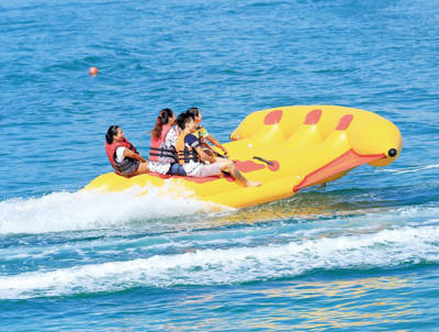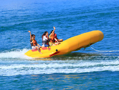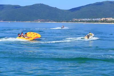 Beyond passive observation, Yalong Bay Underwater World is a hub for high-energy marine recreation. The banana boat ride—pulled by a speedboat at nearly 50 km/h—delivers heart-pounding fun as riders bounce over waves on an inflatable raft shaped like its namesake fruit. For even more adrenaline, the “flying fish” activity uses a motorboat to tow a multi-person inflatable that lifts partially out of the water, creating a sensation akin to soaring above the sea.