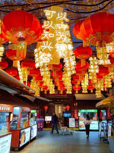 Yongxing Fang is thoughtfully divided into three distinct zones representing Shaanxi’s major geographic and culinary regions: Guanzhong Street (central plains), Northern Shaanxi Street (loess plateau), and Southern Shaanxi Street (mountainous south). Each area features architecture, decor, and menu items unique to its region. In Guanzhong Street, you’ll find iconic dishes like roujiamo (Chinese hamburger) and biangbiang noodles. Northern Shaanxi offers hearty fare such as yangrou paomo (lamb stew with crumbled flatbread) and millet congee, reflecting the rugged pastoral lifestyle. Meanwhile, Southern Shaanxi delights with delicate rice cakes, smoked pork, and tea-infused snacks influenced by its humid, forested terrain near the Qinling Mountains.