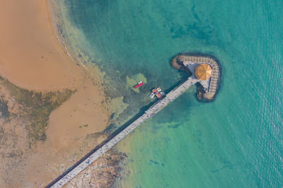 Walking along Zhanqiao Pier offers ever-changing vistas depending on the tide and time of day. At high tide, waves crash dramatically against the triangular breakwater beneath Huilan Pavilion, sending sprays of white foam into the air—an exhilarating sight often captured in travel photos. During low tide, the receding water reveals expansive stretches of ochre-hued reefs and golden sand, inviting visitors to descend and explore tidal pools or hunt for shells and small crabs—a favorite activity among families known locally as 'ganhai' (tide-pooling). On calm days, hundreds of seagulls gather overhead, swooping gracefully just above the water, creating unforgettable photo opportunities.