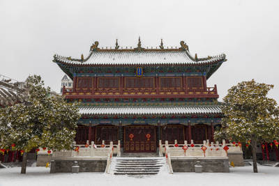 Today, the temple’s surviving core consists primarily of two Qing-era buildings: the majestic Dacheng Hall (Hall of Great Perfection) and the Jimen Gate (Spear Gate), along with a handful of modest side chambers. The Dacheng Hall, oriented precisely north-south in traditional Chinese cosmological alignment, stands as a testament to classical Chinese temple architecture. Its imposing roof is crowned with vibrant green glazed tiles—a color reserved for scholarly and imperial institutions—and adorned at each end with 2-meter-tall dragon-head ornaments known as “chiwen” or “roof dragons.” These mythical creatures symbolize the dragon’s dominion over rain and are traditionally believed to ward off fire, a poignant detail given the temple’s tragic history with conflagrations.