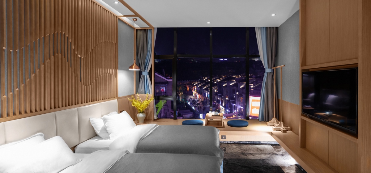 Why Stay Here: Located at No. 54 East Jiefang Road, Xifeng District—right in the heart of East-West Lane, with food, entertainment, and attractions at your doorstep. Opened in 2020, all facilities are brand new. Despite being in the bustling city center, the soundproofing is excellent. The design is steeped in ancient elegance, with inspiration seemingly drawn from the popular Chinese drama 'Story of Yanxi Palace,' featuring harmonious and atmospheric color schemes. The hotel offers paid travel photography services—creating a set of ancient-style photos here makes for a great experience! The top floor provides excellent views facing the Prince's Palace and Du Xiu Peak. The hotel has 40 rooms including family suites, Chinese courtyard suites, and family-themed rooms. Room rates: 300-600 RMB ($42-83 USD).