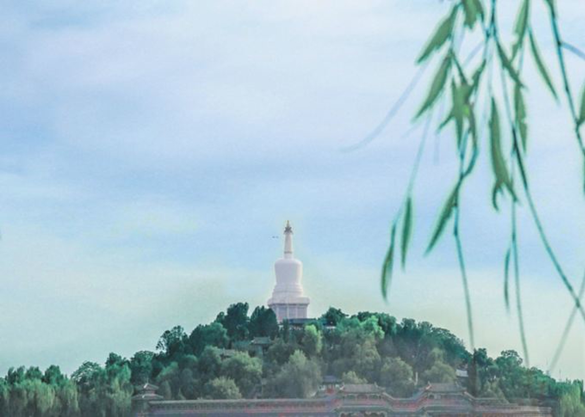 After exiting Yonghe Temple (雍和宫), I went to Beihai Park (北海公园). I have to complain—crowds were comparable to Spring Festival travel! I bought the ticket but had no desire to tour—even resting near the entrance. Why did I take this photo like this? Because even the lake was full of people on tour boats!