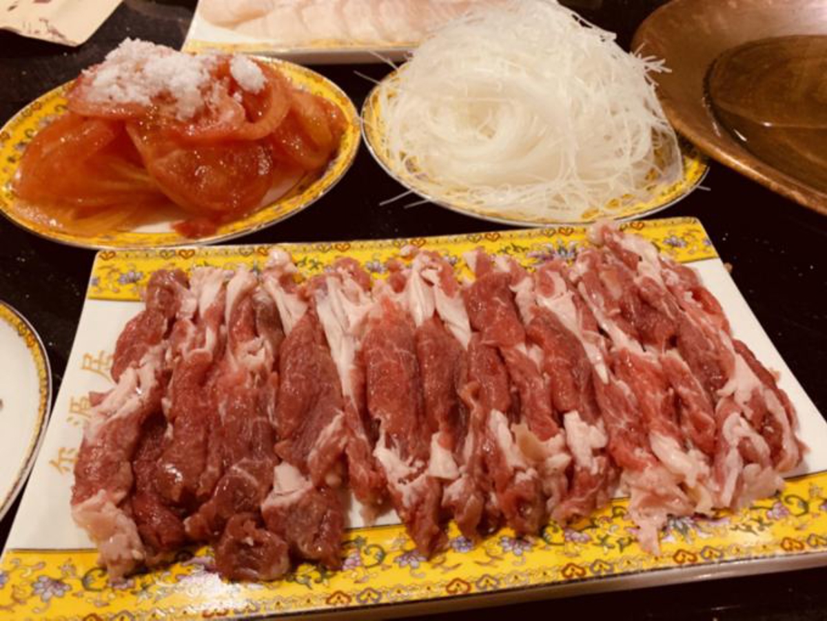 Traditional Beijing hot pot (老北京涮肉) uses only boiling water as the broth, with green onions, ginger, and wolfberries. Compared to the colorful broths we usually eat, this is truly the "stream of clarity." It seems the broth doesn't do much for the dipping ingredients, but it lets you taste the most original flavor of the lamb.