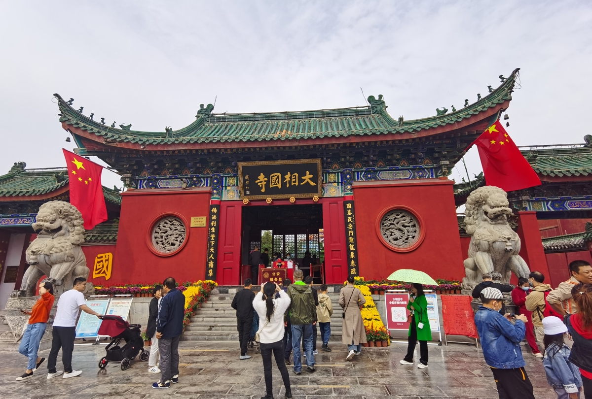 Then on to Kaifeng (开封), the former capital of the Northern Song Dynasty and a UNESCO heritage city. Our first stop: Daxiangguo Temple (大相国寺)—yes, the one where the fictional monk Lu Zhishen famously pulled up a willow tree in Water Margin (水浒传).