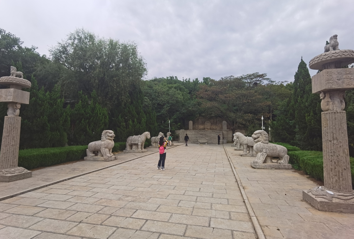 The tomb complex is more like a small park—trees, pathways, and a long spirit way leading to the tomb chamber. The tomb itself has been archaeologically excavated, but the chamber entrance is now sealed. You can only view the exterior.