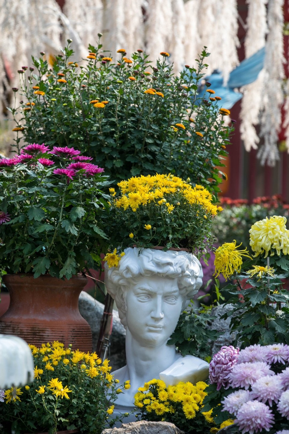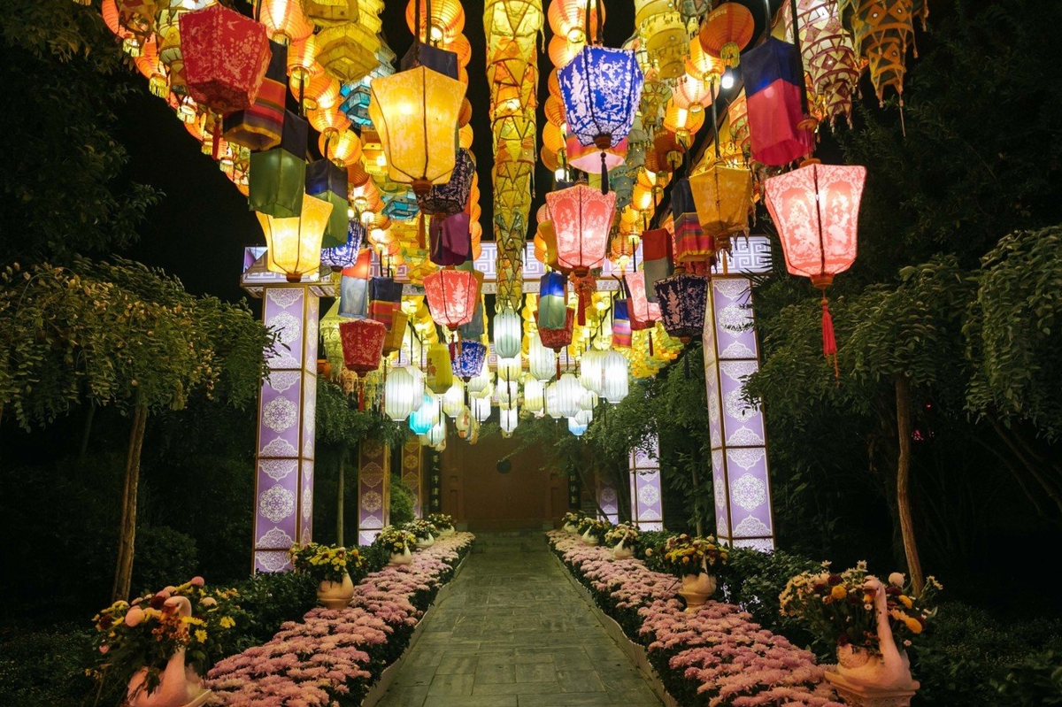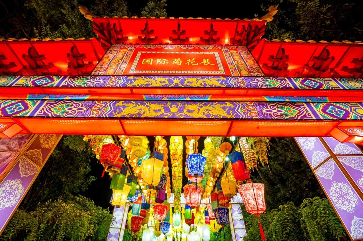 When night falls, viewing chrysanthemums takes on another dimension—this is where staying inside the park proves advantageous. You can wait until tourists thin out, then appreciate the beauty alone and freely take photos.