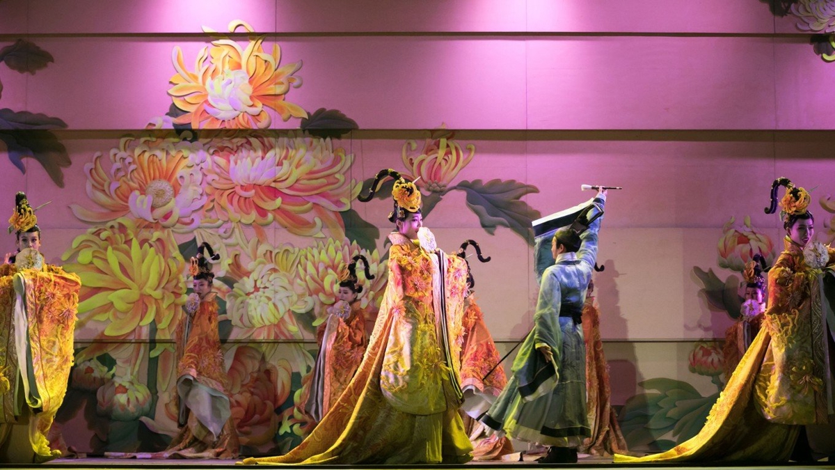 The performance is unique. It begins with a poet drinking wine and composing verses, then introduces a Song Dynasty woman. She doesn't reveal her face; instead, she dances behind a chrysanthemum curtain, her body movements following the music's melody, creating an air of mystery.