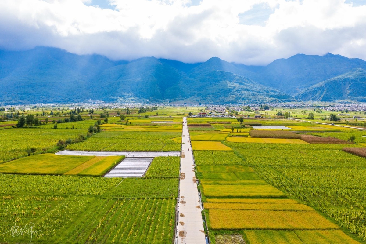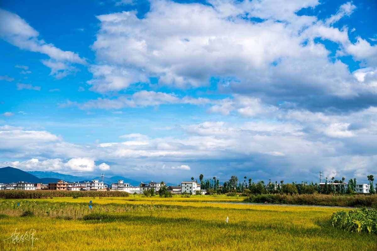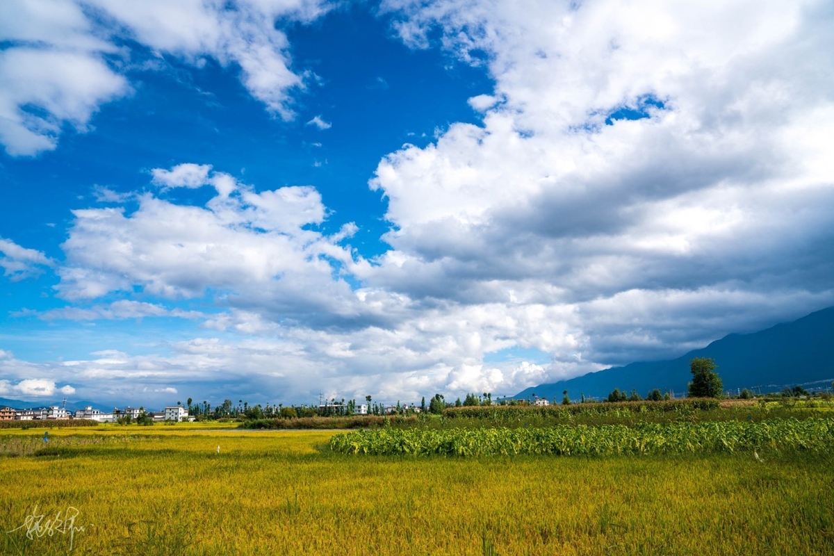 Coming at the end of September, the season was perfect—early autumn in Dali, with golden wheat fields everywhere. Along the road from Dali Ancient Town to Shuanglang, the scenery is endless pastoral beauty.
