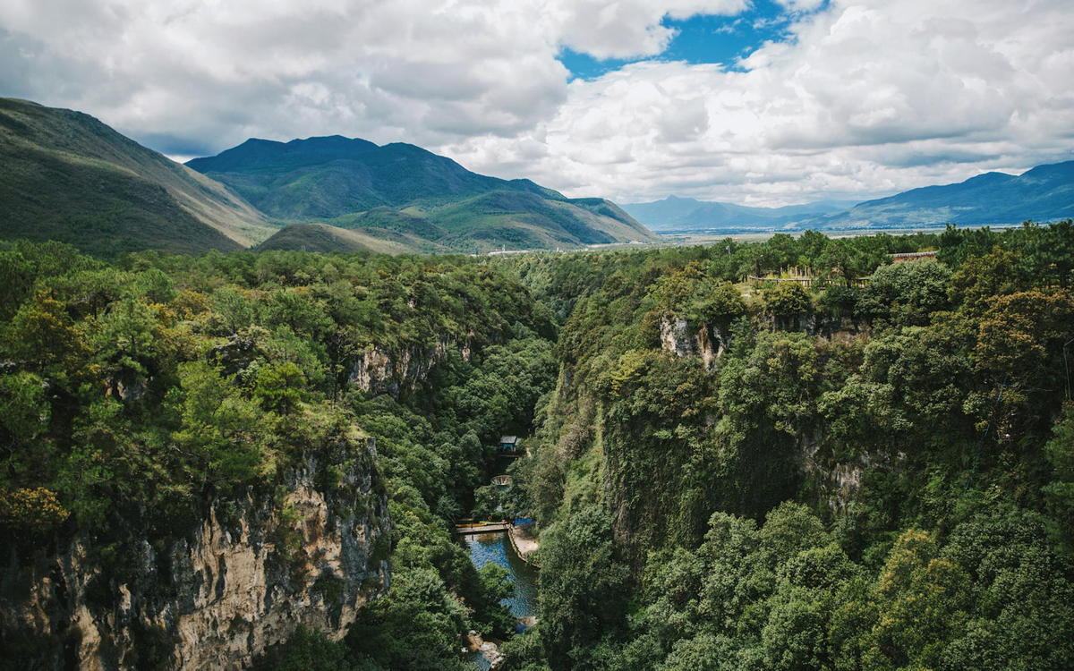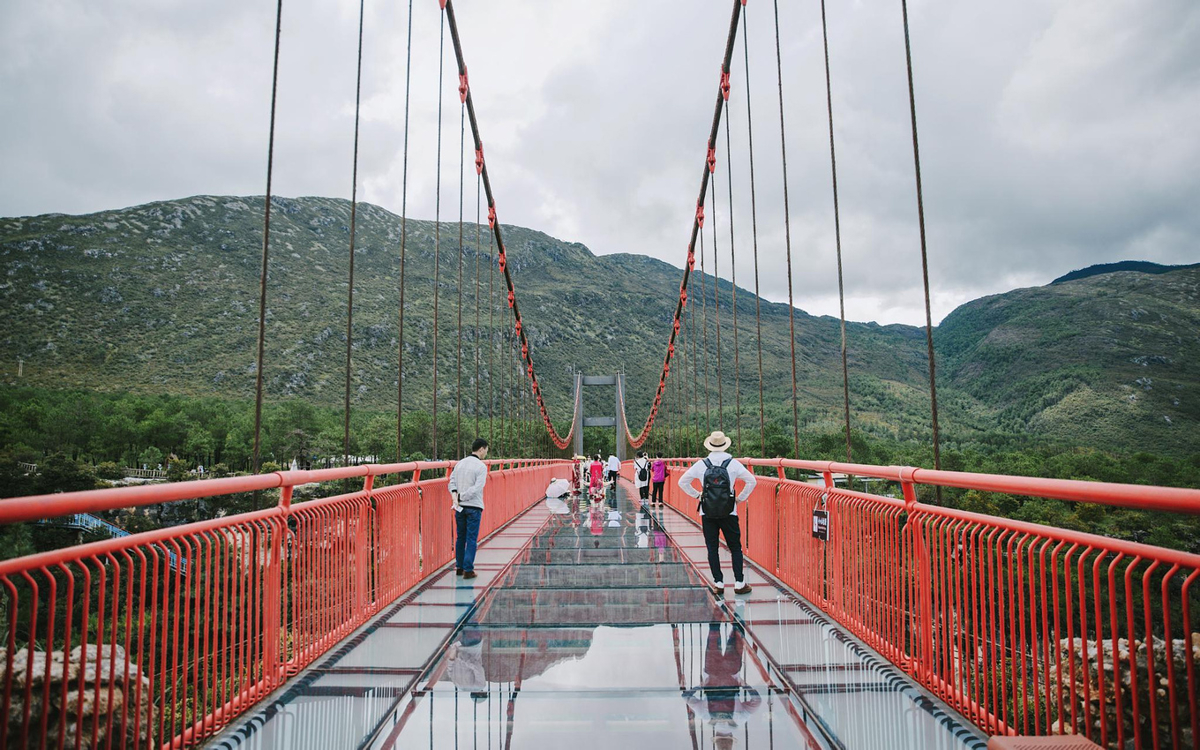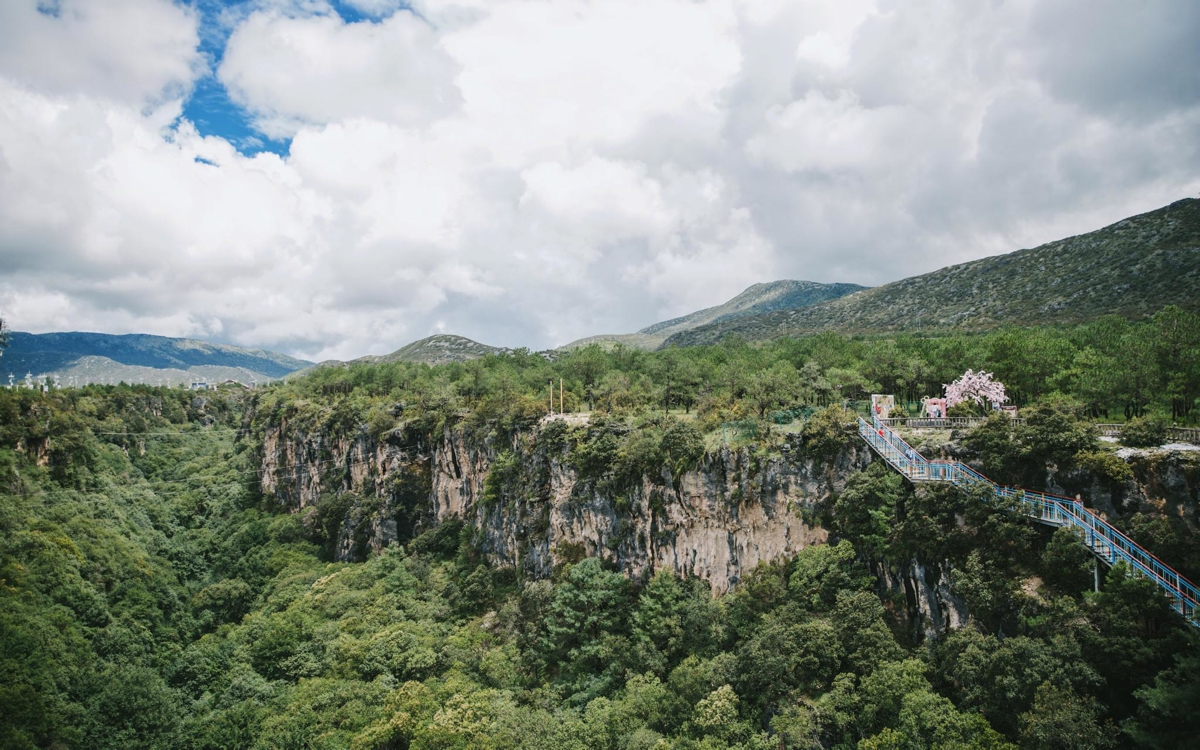The red suspension bridge spans the entire Nuomeile Grand Canyon—not only satisfying your desire for thrills and excitement, but also a great place for viewing scenery. It lets you enjoy 360-degree unobstructed views of the fairyland-like Nuomeile Grand Canyon's stunning landscape. If you have time, go down into the valley to closely experience the pleasure and coolness of the green trees at the bottom.