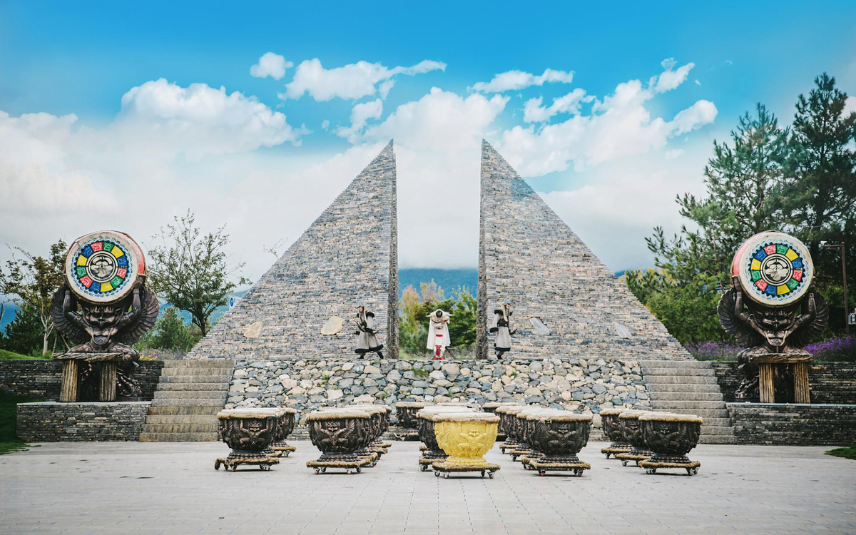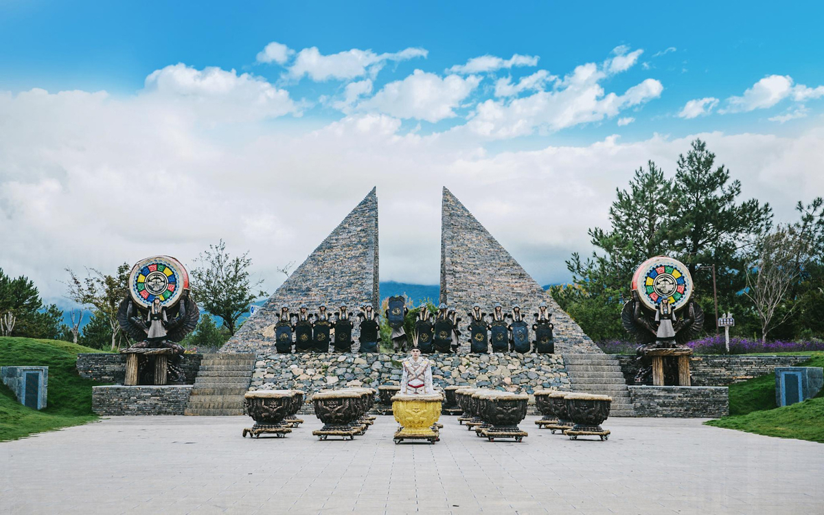 The "Source of Snow Mountain" at the entrance resembles an Egyptian pyramid—it's revered as the faith of the Dongba people. Not only can you view the most beautiful Yulong Snow Mountain from afar, but it's also the place for worshiping the mountain god "Sanduo."