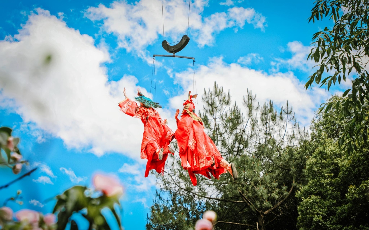 In "The Glory of Mu Fu," the love between Mu Zeng and Ale Qiu that couldn't be fulfilled is heart-wrenching. Coming to the Lover's Suicide Valley Show, you can closely see them wearing wedding costumes at the cliff beneath Yulong Snow Mountain, jumping together—a bittersweet, moving scene.