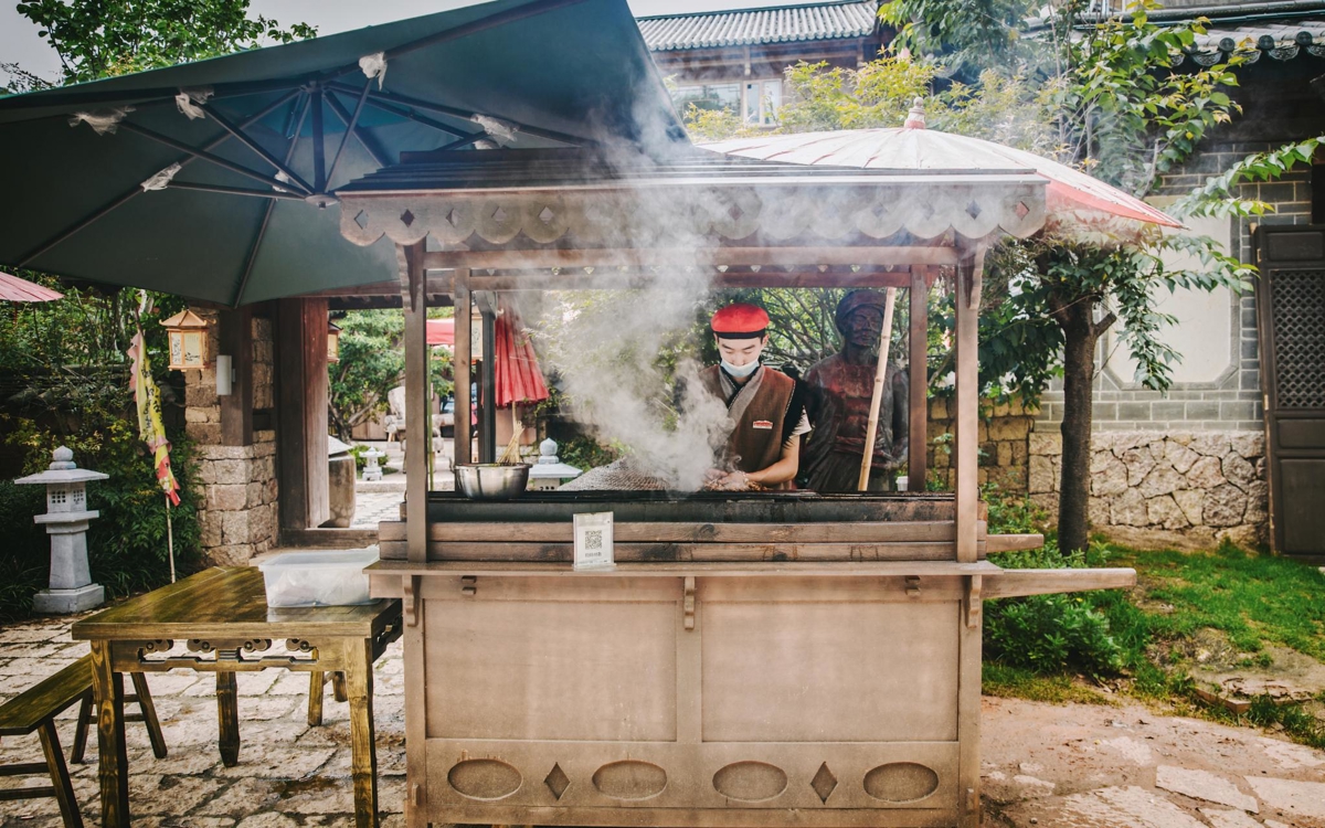 After a day of fun, fatigue hits quickly—this is when only food can heal us! When you come to Snow Mountain Canyon, don't forget to taste the authentic delicious food at Muren Flower Street—Kunming braised noodles, crossing-the-bridge rice noodles, grilled stinky tofu, papaya water, brown sugar bean curd... These food stalls gathered in the ancient Lijiang residential courtyards of Muren Food Court are not only delicious but also super affordable!