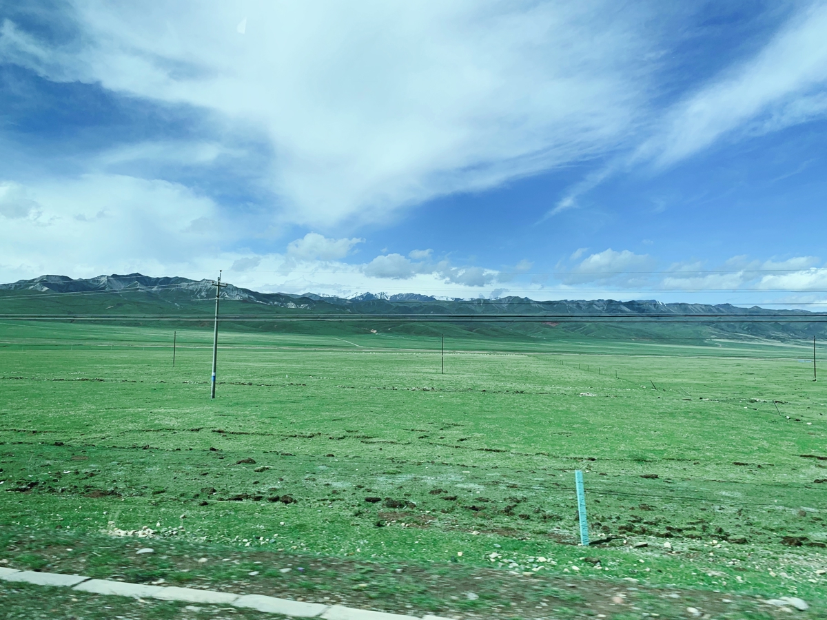 The Qilian Grassland (祁连草原) was the most anticipated stop—we brought our graduation gowns all the way from across China just for photos in front of this magnificent grassland. We asked our driver to take our photos, and even though we couldn't physically enter the grassland itself, the sweeping views made it more than worth it.