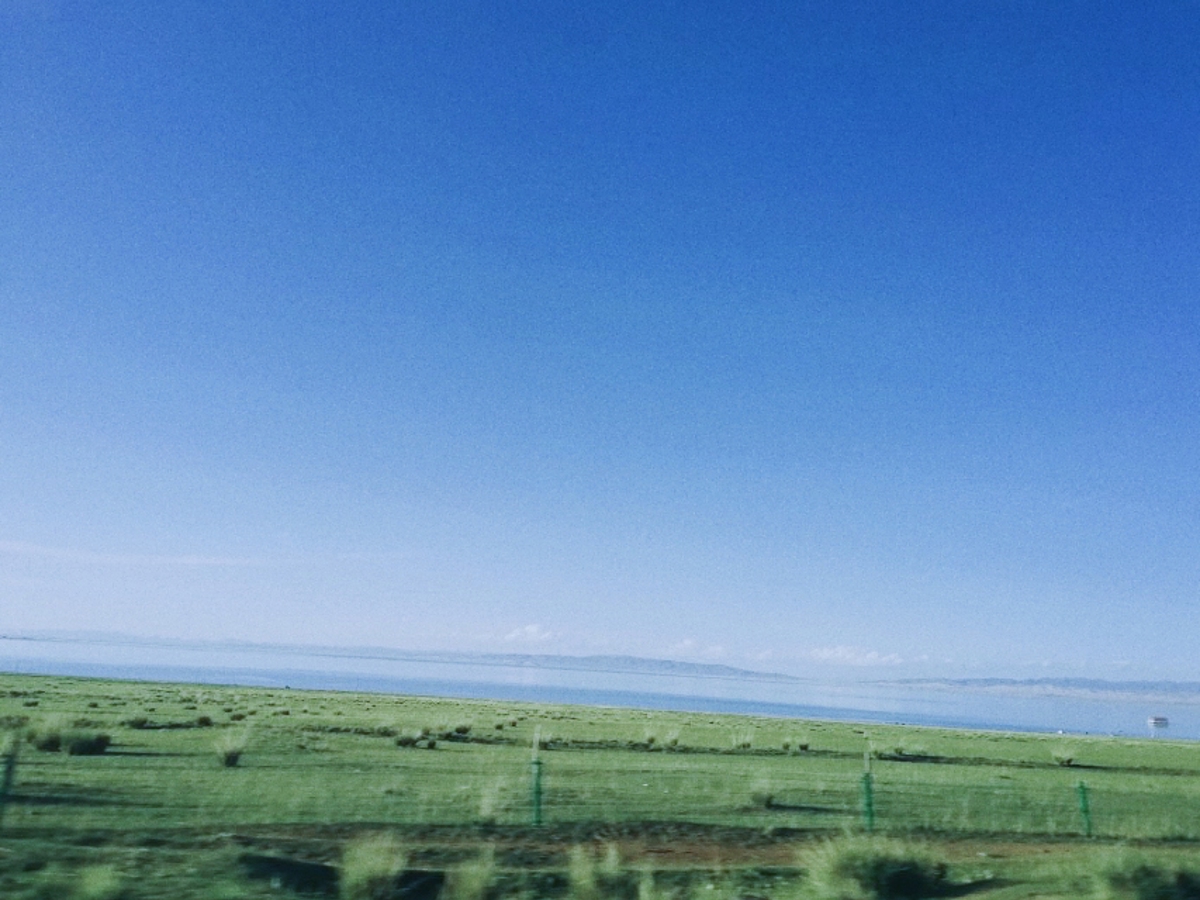 By early afternoon, we reached Qinghai Lake (青海湖), the largest lake in China. The scenery is endless—ride the tourist bus around and it feels like the horizon goes on forever.紫外线的伤害 (UV damage) is no joke here. Sunscreen and sunglasses are mandatory, or you'll regret it.