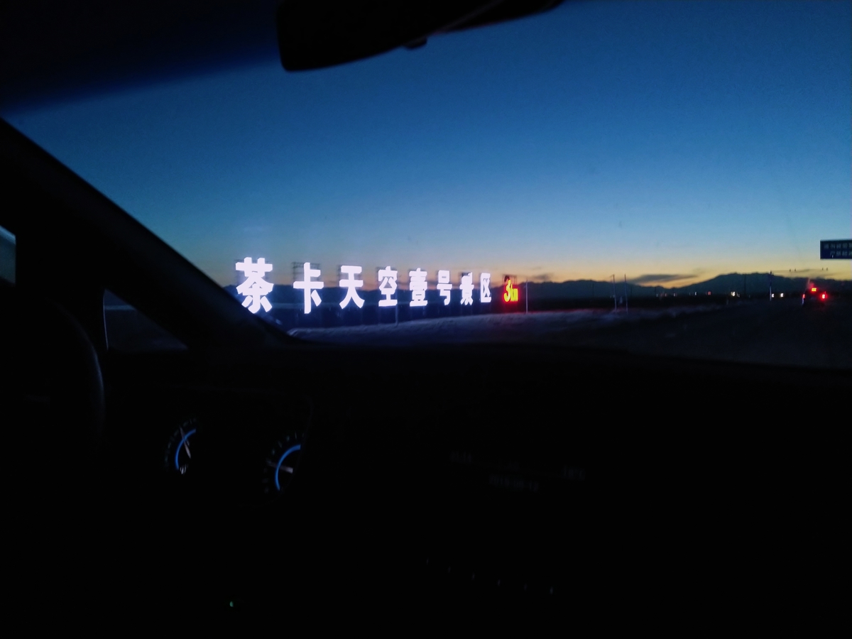 That evening, we drove to Chaka Town (茶卡镇) for the night. As dusk fell, the sky turned deep blue on both sides of the road, with dark clouds and mountains pressing in from ahead. We drove in comfortable silence, watching the vastness of the land unfold before us.