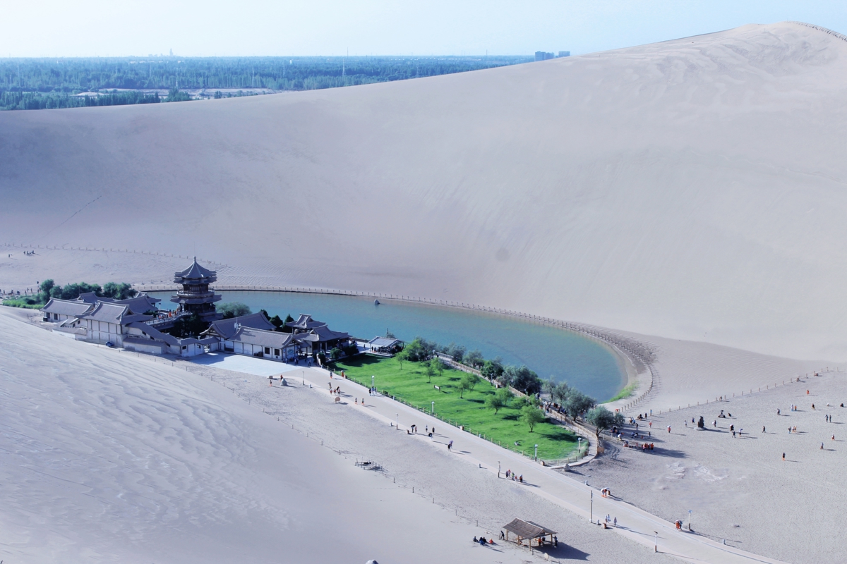 Mingsha Mountain and Crescent Spring (鸣沙山月牙泉) are right next to each other. Our driver told us that artificial measures are now needed to maintain the spring's water level—nature is losing the battle against the desert.