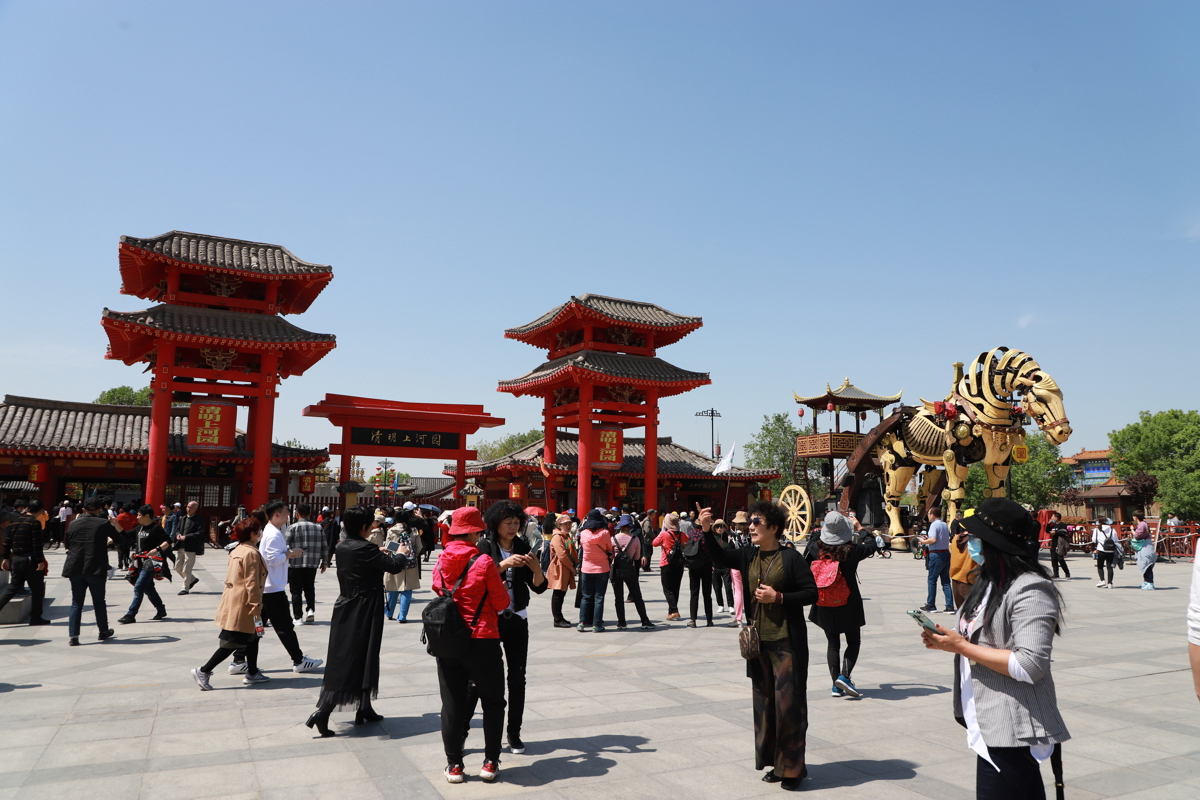 After lunch, we walked 1.5 kilometers to Qingming Shanghe Garden (清明上河园) - it was the weekend, so there were many visitors.