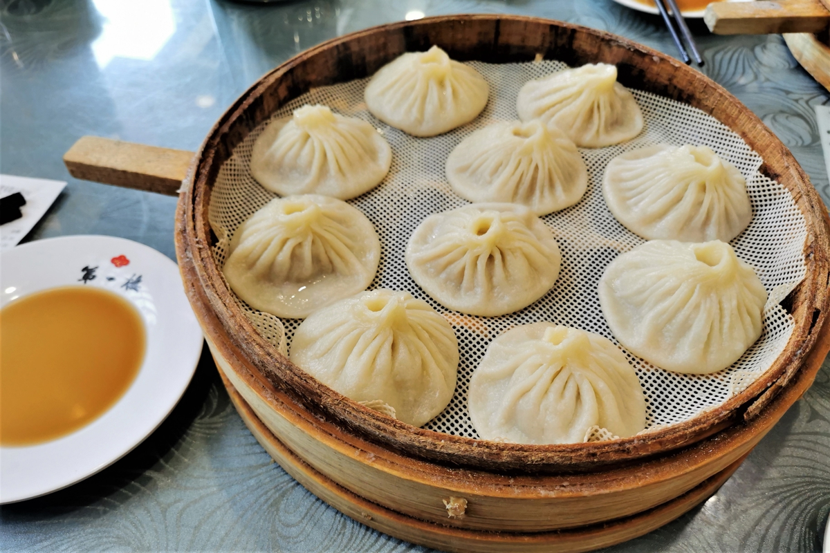 For lunch, we returned to Drum Tower Square and finally got a table at "First Floor" (第一楼) - there were far fewer diners at lunch. The soup dumplings (灌汤包) we'd traveled for were finally ours!