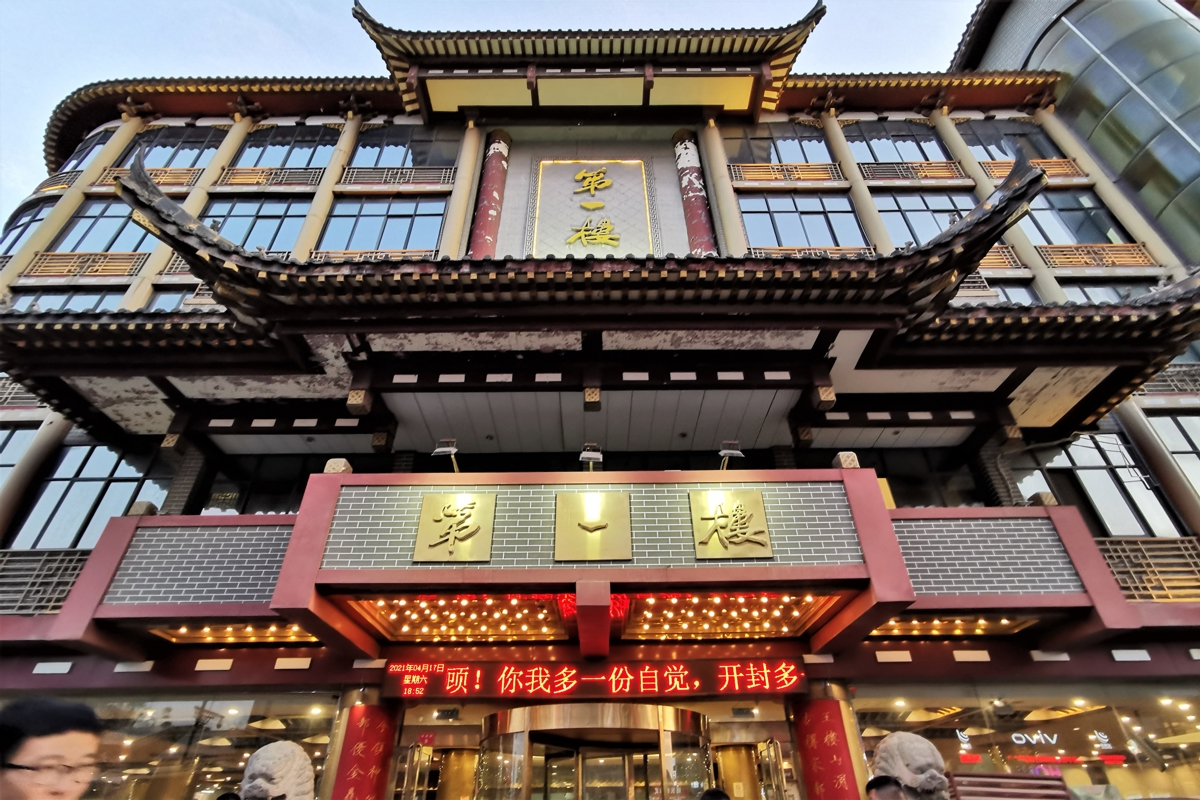 For dinner, we first tried the famous "First Floor" (第一楼) restaurant near Drum Tower Square - there was a 45-minute wait. We then went to "You Yi Xin" (又一新) nearby, where we enjoyed Kaifeng's famous Sweet and Sour Soft-Braised Carp with Noodles (糖醋软熘鲤鱼焙面), a Henan intangible cultural heritage dish. The noodles on top require real skill to make!