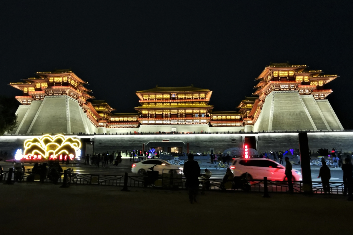 The return bus dropped us at Yingtian Gate (应天门) - we got off to enjoy the night view of this magnificent Tang Dynasty structure.