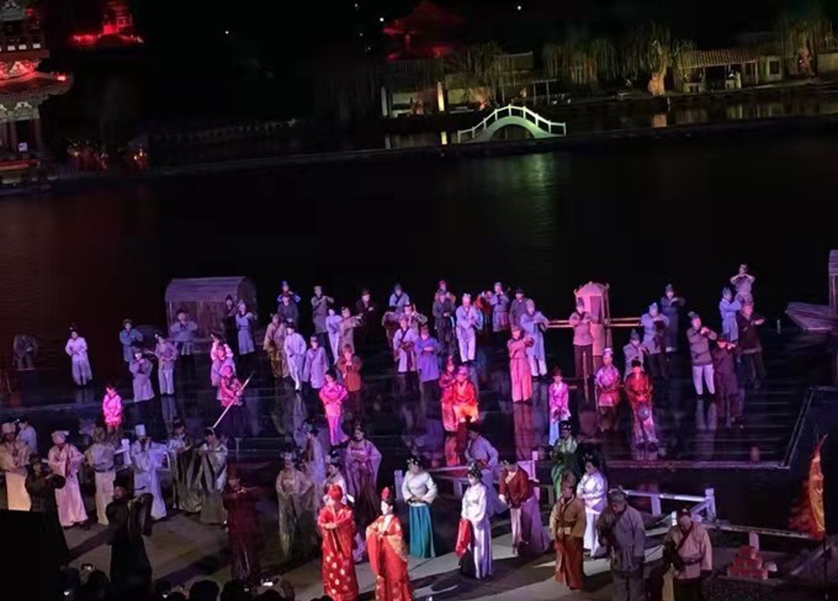 The highlight of the evening was undoubtedly 《大宋·东京梦华》('Dreams of the Eastern Capital') – a spectacular live performance staged on water with over 700 performers. As the music began and dancers in flowing silk costumes glided across floating stages, I felt genuine goosebumps. The production uses cutting-edge lighting and stage technology to recreate the golden age of Bianliang (Kaifeng's ancient name), complete with poetry, martial arts, and acrobatics. Classical Song Dynasty poetry was woven throughout the performance, and even without understanding every word, the emotion transcended language barriers.
