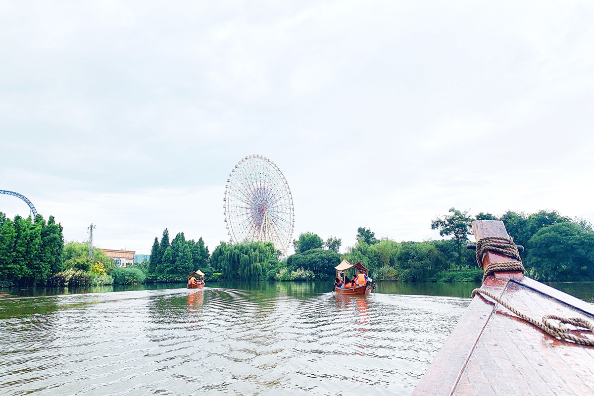 I particularly loved the Dian Sea Fishing Boat experience. Sitting in an open-view boat, gliding across the water, enjoying the breeze while admiring the scenery on both sides—I occasionally spotted fish jumping out of the water, with flowers and birdsong on the banks and a giant Ferris wheel in the distance. It felt like sailing through a fairy tale world.
