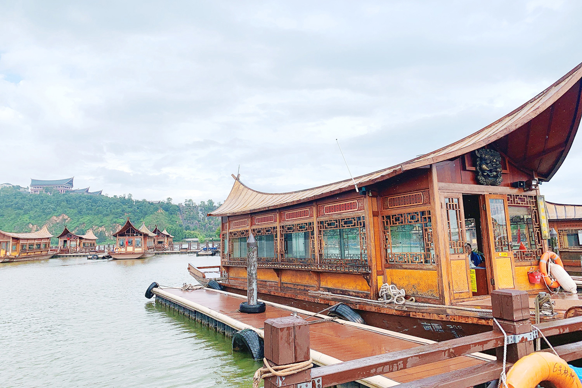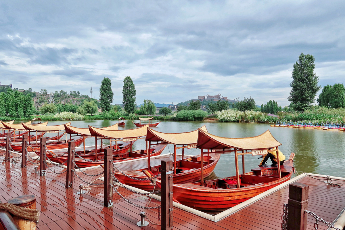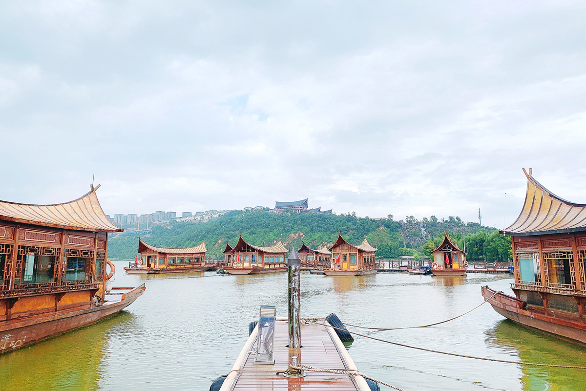 In the afternoon, a brief rain shower didn't dampen our spirits. After the rain passed, we experienced the Ancient Dian painted boat cruise. With 46 classical-style boats docked at the Ancient Dian Art Sea Pier, the scene itself looked like a beautiful painting come to life.