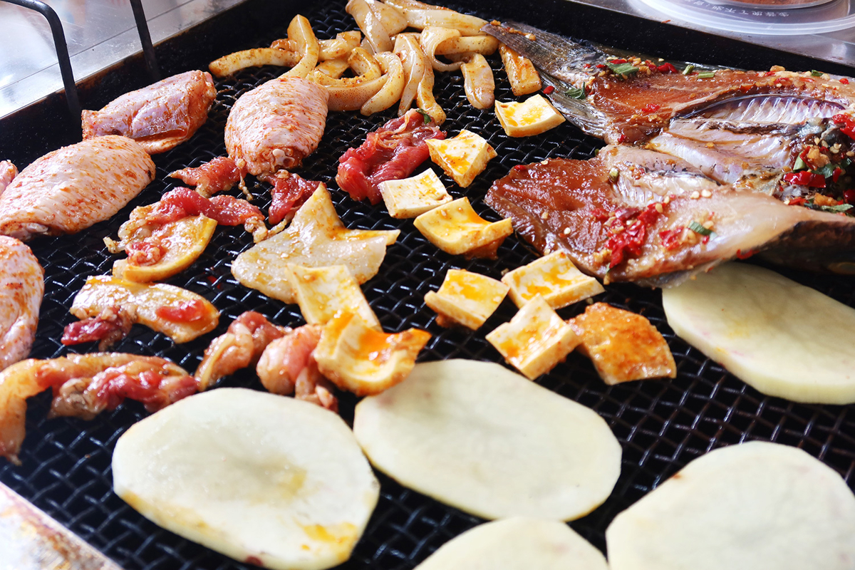 For lunch, we had a BBQ feast right at the camp, including a whole roasted lamb. Gathering around the grill with friends after all that activity, chatting and laughing while cooking—pure bliss!