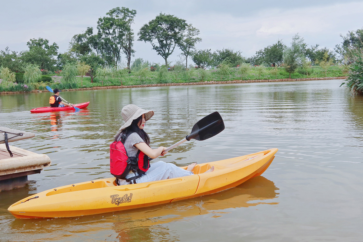 Next up was kayaking, which I found much easier than rock climbing. The key is balance—just follow the instructor's guidance and you won't flip over. Paddling gently toward the center of the lake while enjoying the scenic views along the way was incredibly relaxing.