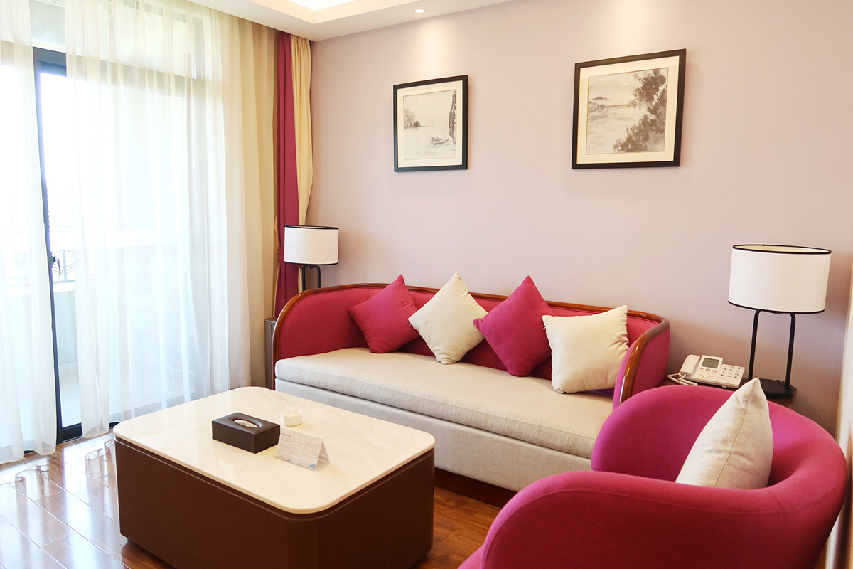We checked into the Ancient Dian Resort Hotel's suite, and I was impressed—it felt like a home away from home with a kitchen, living room, and a spacious balcony overlooking the beautiful scenery. Located within a wellness town, the hotel had everything we needed: supermarkets, restaurants, and even medical facilities nearby. The area is particularly popular for retirees, and I could see why—the environment is incredibly comfortable and peaceful.