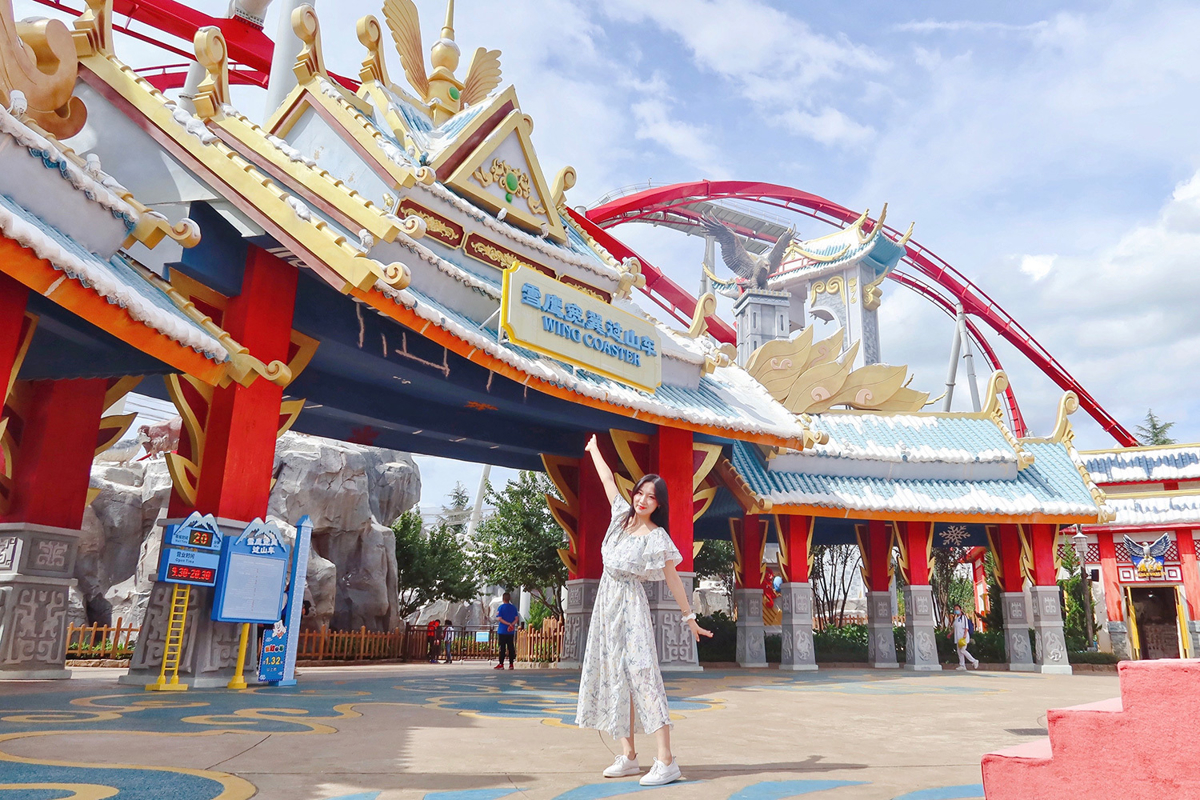 Today was dedicated to the Colorful Yunnan Happy World (七彩云南欢乐世界 Qīcǎi Yúnnán Huānlè Shìjiè) theme park. Ever since I spotted that massive Ferris wheel from the wetland park, I'd been counting down to this day. This is hands-down the most Instagram-worthy amusement park in Kunming, featuring 81 attractions with world-class rides combined with local Yunnan themes.