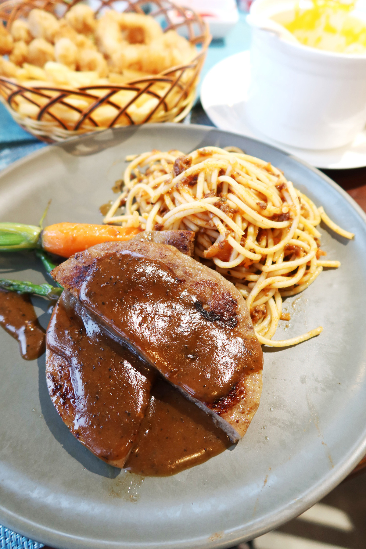Right beside Qiongtai Pool is the Mu Yun Tai Restaurant (沐云台), where we had dinner after soaking. Its mountaintop location offers stunning views while dining. I especially loved the steak and pumpkin soup—enjoying delicious food after a relaxing hot spring bath was absolute heaven.