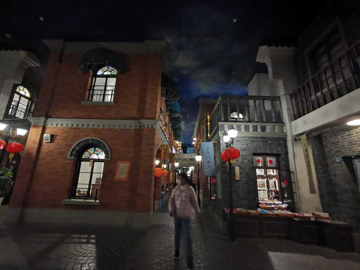 The ancient streets of Laomen East at dusk—lanterns lit up, creating a magical atmosphere.